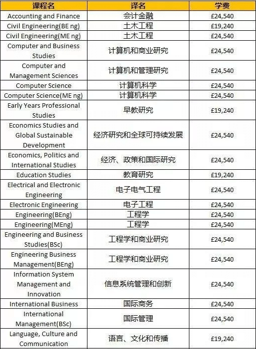 下面分享一批英国院校学费情况~
