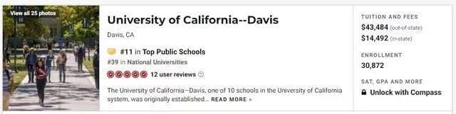 录取率:总体录取率从48%上升到52%。州外和国际申请者的录取率仍然明显高于加州居民,州外学生占该校总录取人数的30%。