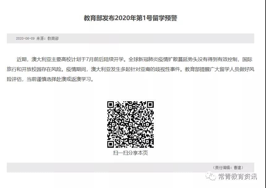 近期,澳大利亚主要高校计划于7月前后陆续开学。全球新冠肺炎疫情扩散蔓延势头没有得到有效控制,国际旅行和开放校园存在风险。疫情期间,澳大利亚发生多起针对亚裔的歧视性事件。教育部提醒广大留学人员做好风险评估,当前谨慎选择赴澳或返澳学习。