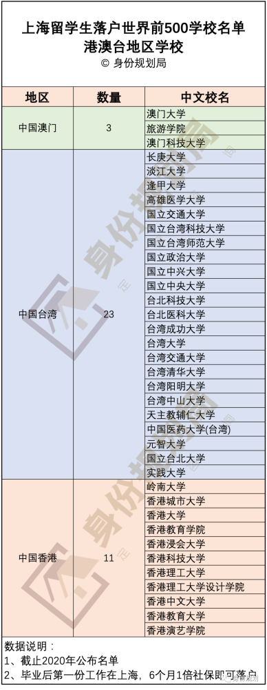 另外多说一点,除了国内的清华、北大、上海交大、复旦、同济、华东师大本科可以直接落户之外,去上面名单中的香港、澳门学校读个本科,到上海落户也一样很容易。
