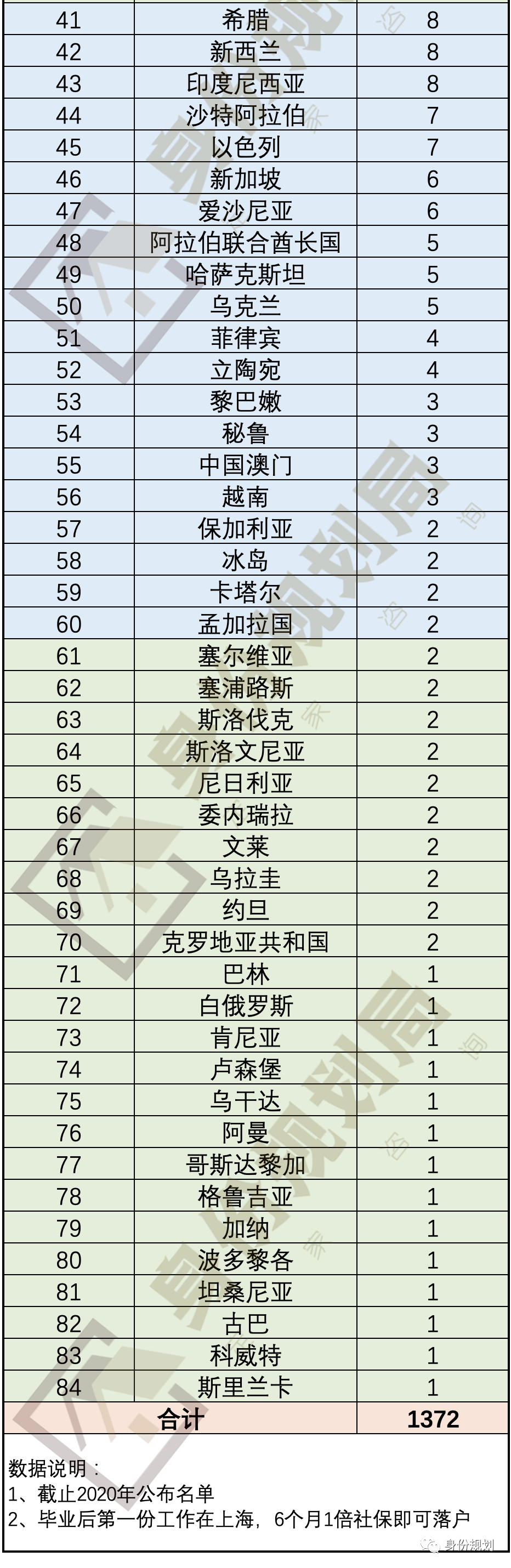 政策里说的“世界排名前500的学校”名单,每年都会新增,截止2020年其实一共有1372个。