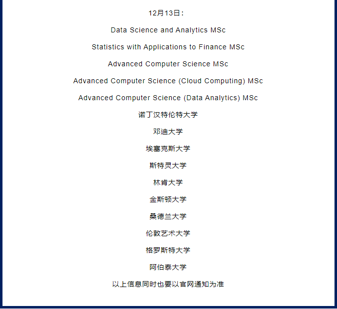 爱丁堡大学部分专业,第一轮申请也差不多在10月14号就已经截止了。