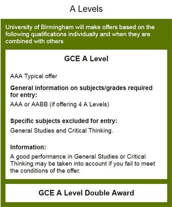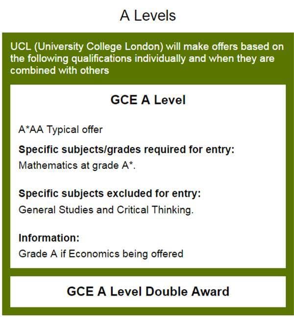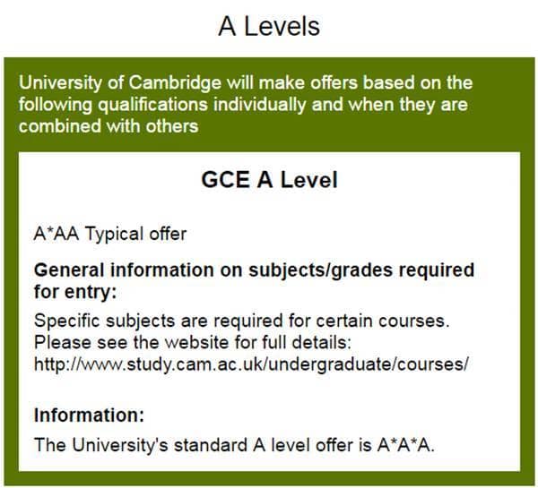 各大学对A Level的分数要求