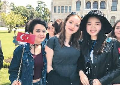 张欣迪(右一)在英国求学期间,除了完成学习任务,也会在闲暇时间四处游历以增长见识。图为她在土耳其旅行时与当地友人的合影。