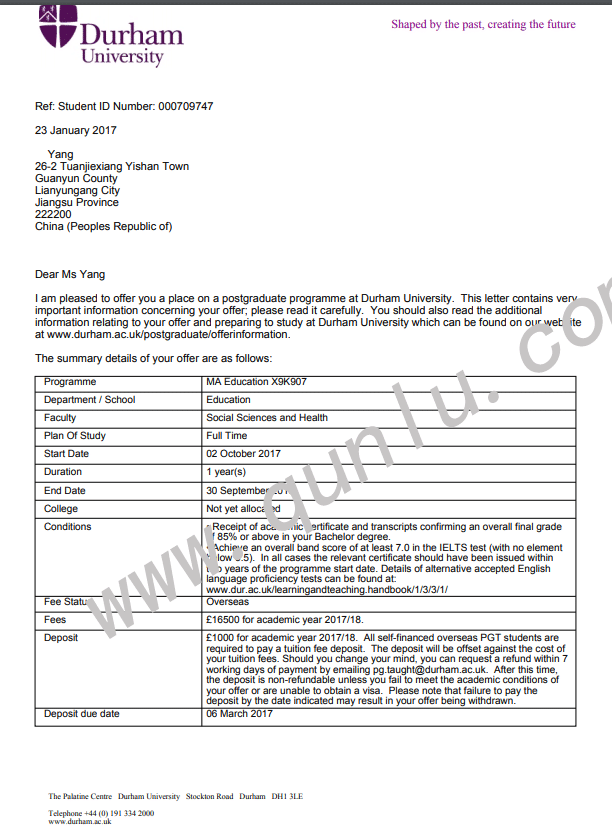 • 录取结果: University of Sheffield;UEA;University of Durham;Cardiff University...