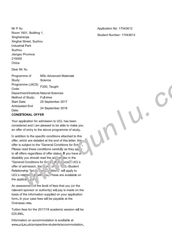 • 案例简介: 于University First City of Oxford College就读,并获得offer