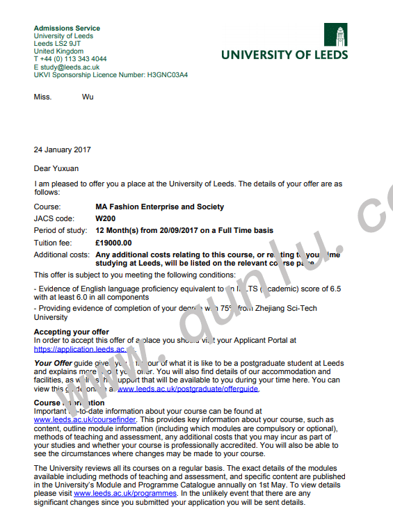 • 案例简介: 于浙江理工大学,读纺织品设计专业,并以GPA 3.42分的成绩获得两所学校的offer