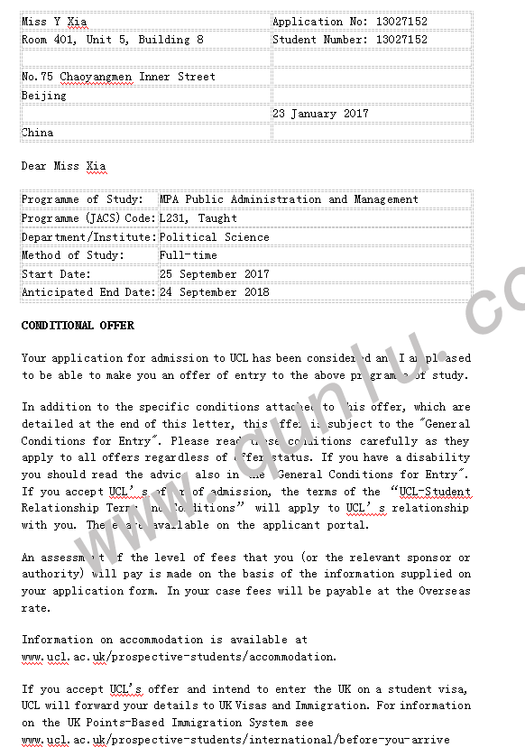 • 录取结果: LSE;UCL