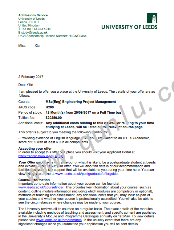 • 恭喜夏同学获得University of Leeds和University of Southampton的offer