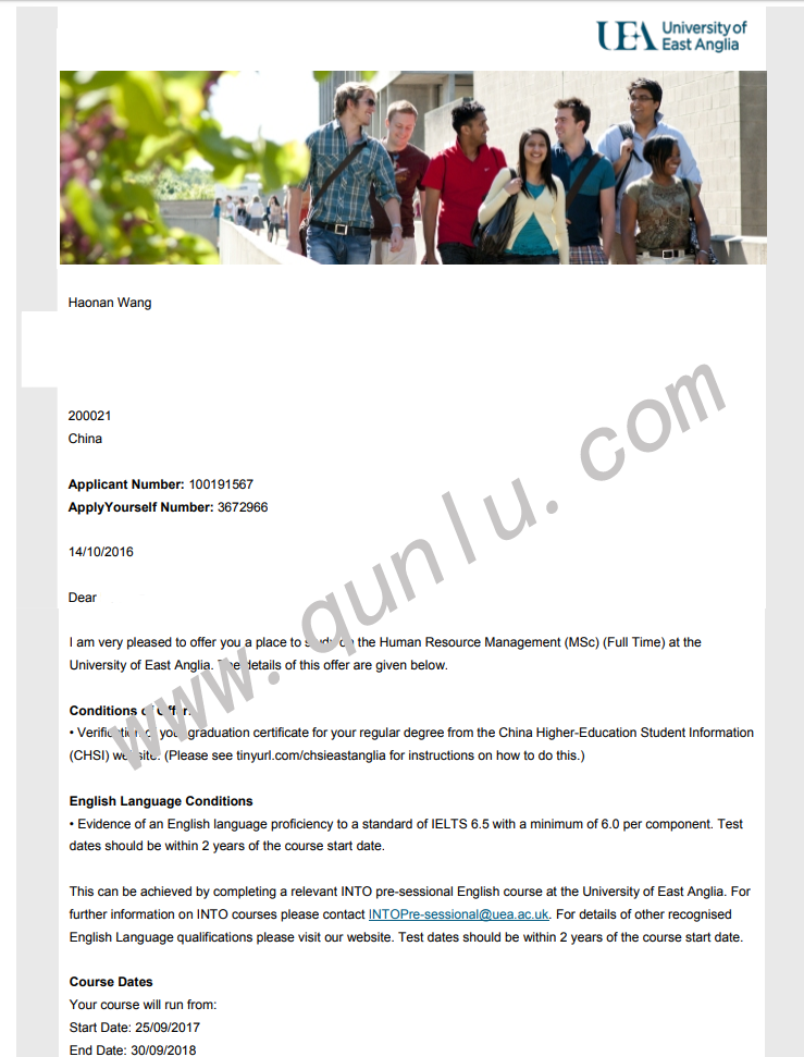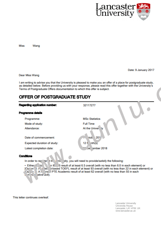 • 恭喜王同学获得University of Birmingham和Lancaster University的offer