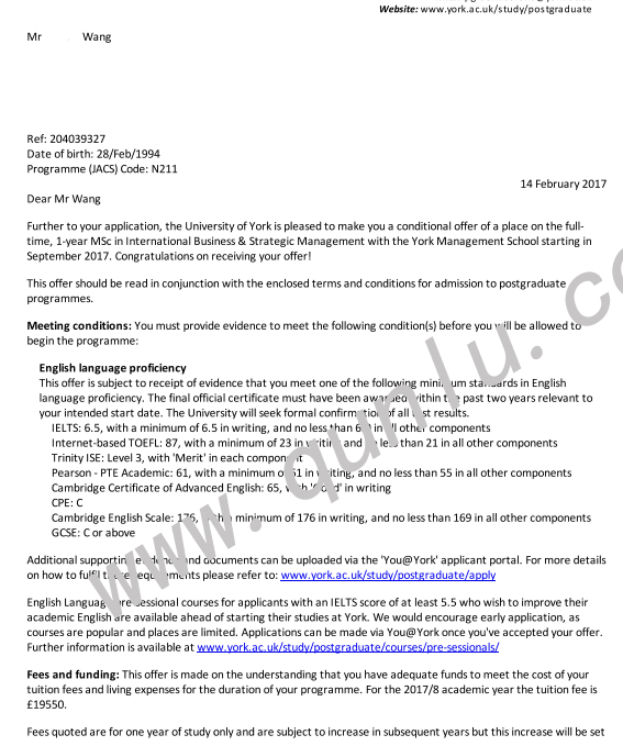 • 恭喜王同学获得Newcastle University和University of York的offer