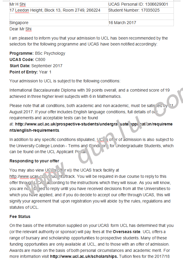 • 录取结果: UCL