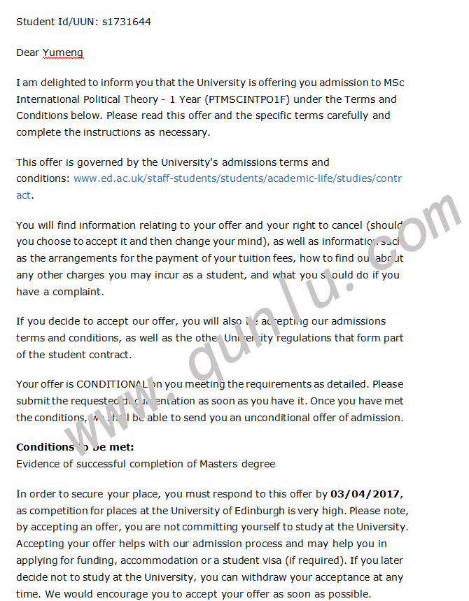 • 录取结果: University of Edinburgh;University of Manchester