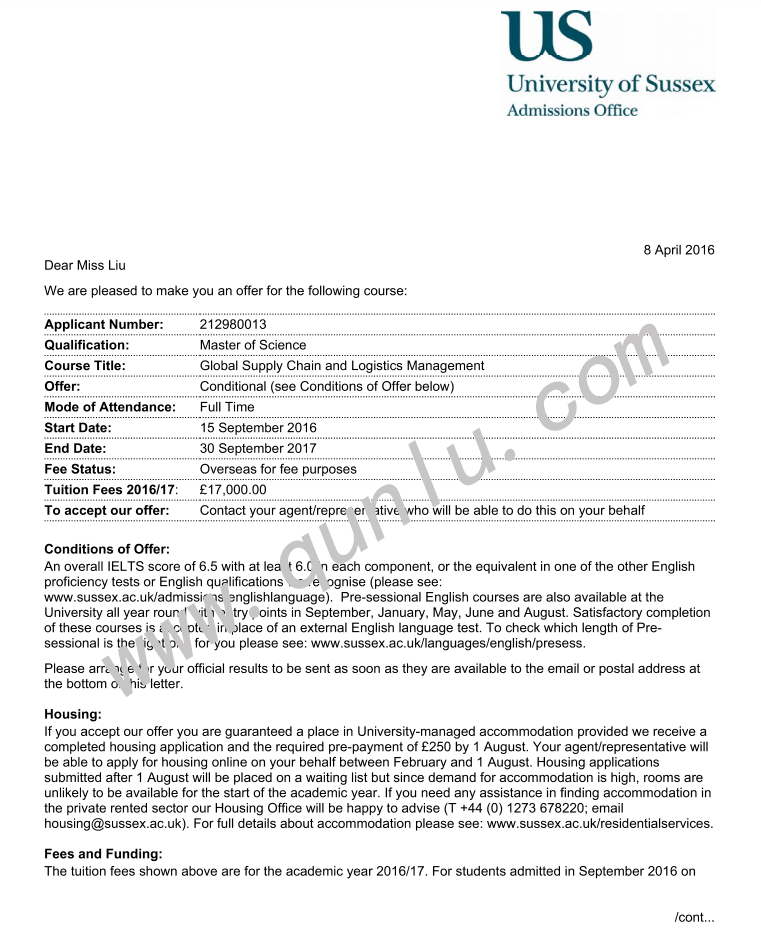 • 恭喜刘同学获得Cardiff University和University of Sussex的offer
