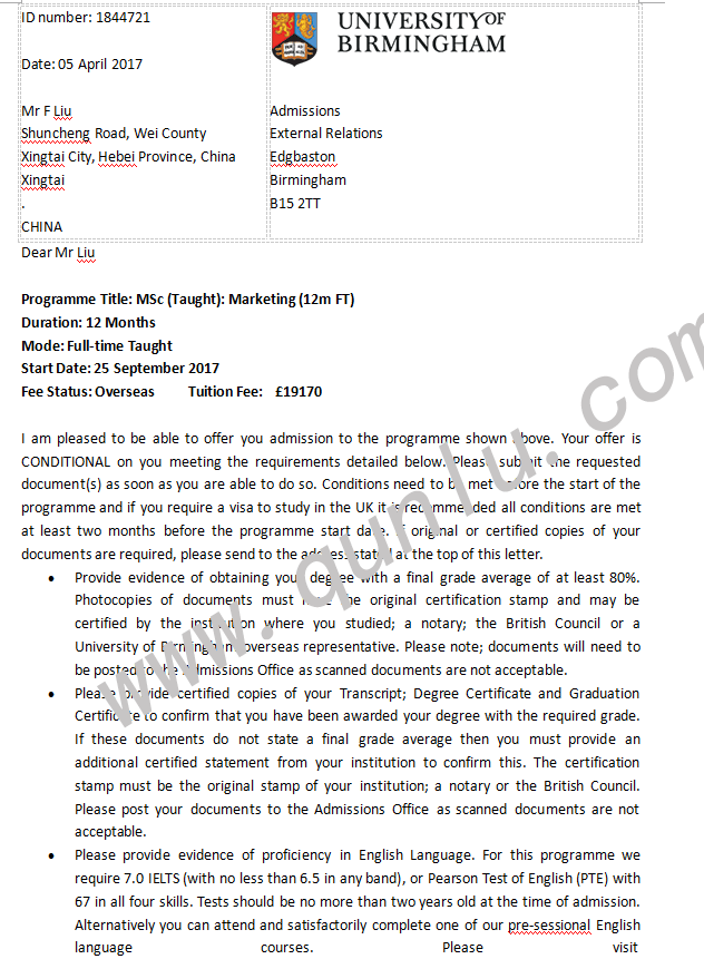 • 录取结果: University of Birmingham;Lancaster University;University of Leeds;University of Nottingham...