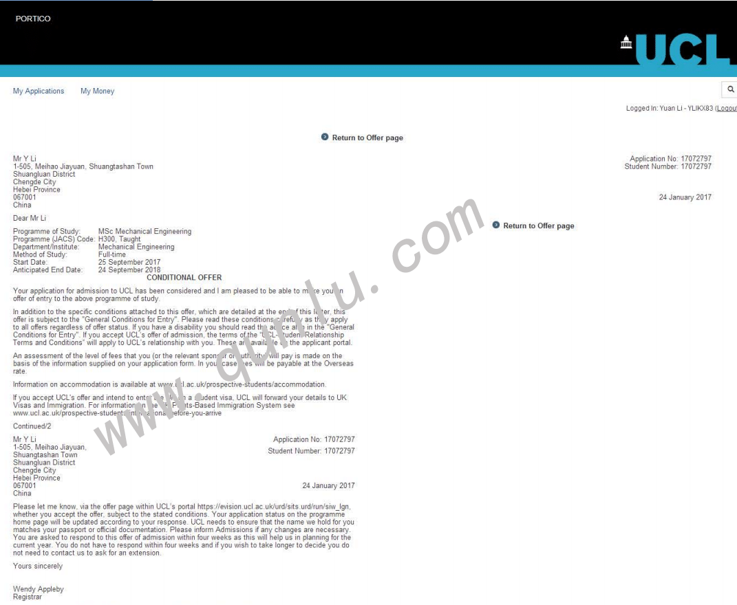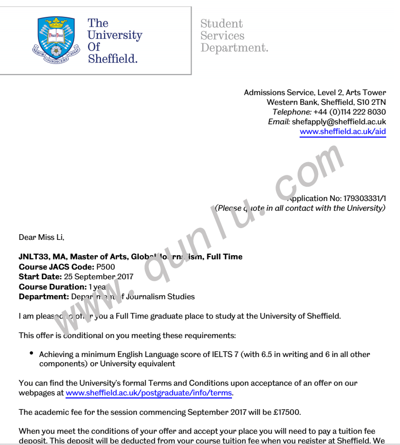 • 恭喜李同学获得UCL、University of Manchester和 University of Sheffield的offer