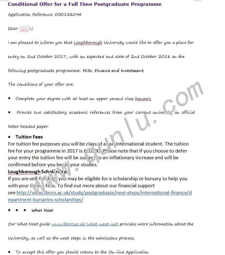 • 恭喜李同学获得Cass Business School、Loughborough University的offer