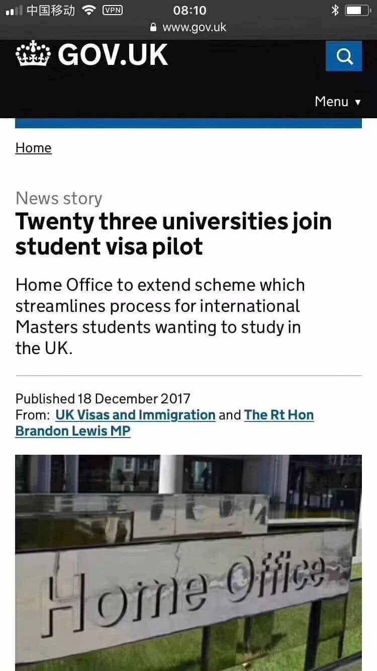 具体信息请参考官网:https://www.gov.uk/government/news/twenty-three-universities-join-student-visa-pilot